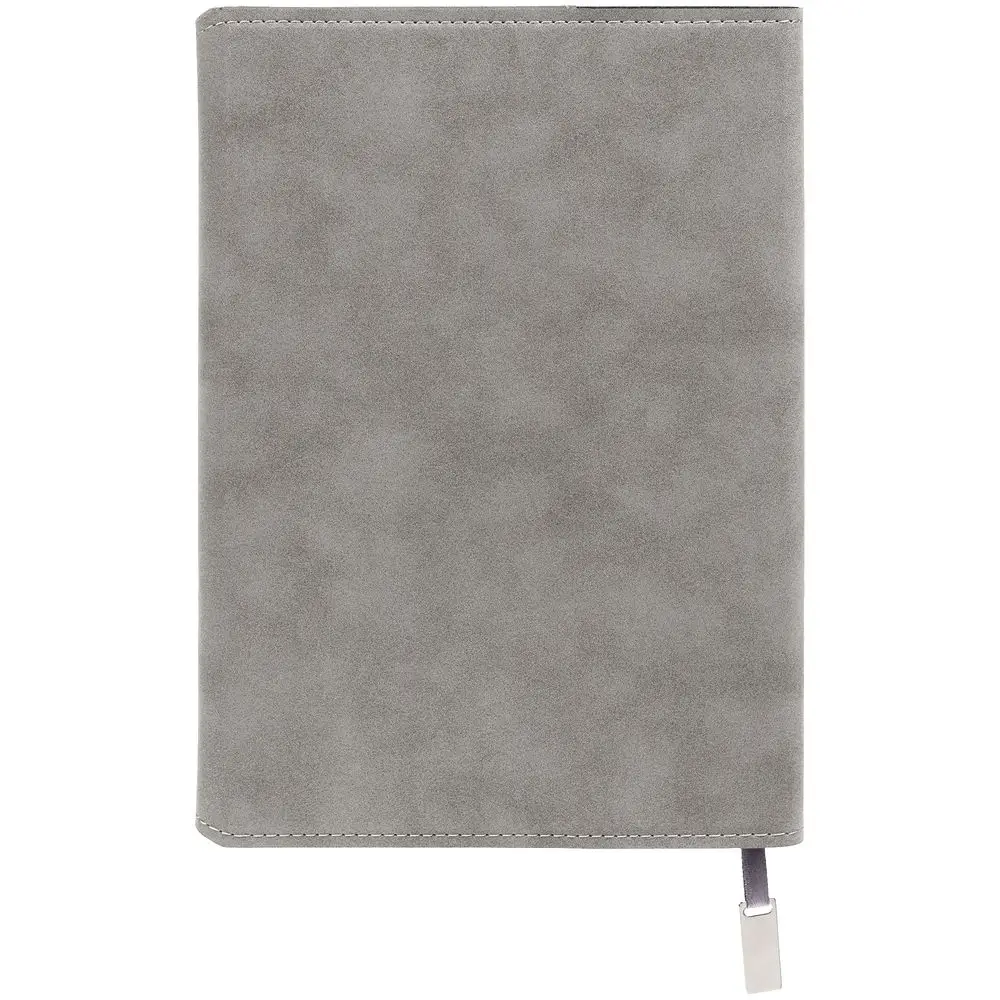 Ежедневник в гибкой суперобложке c карманом на молнии, выполнен из материала Nubuck, серый СС. Дополнен капталом и металлической шильдой на ляссе серого цвета.
