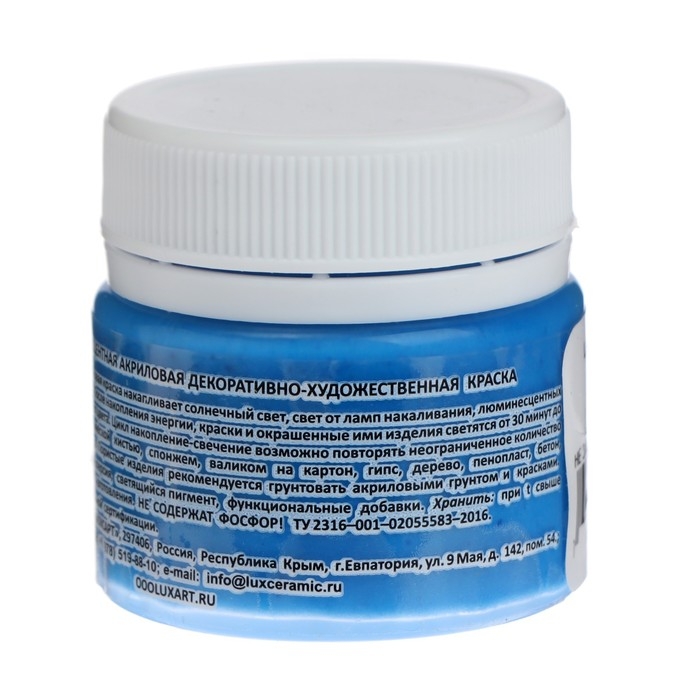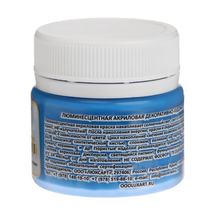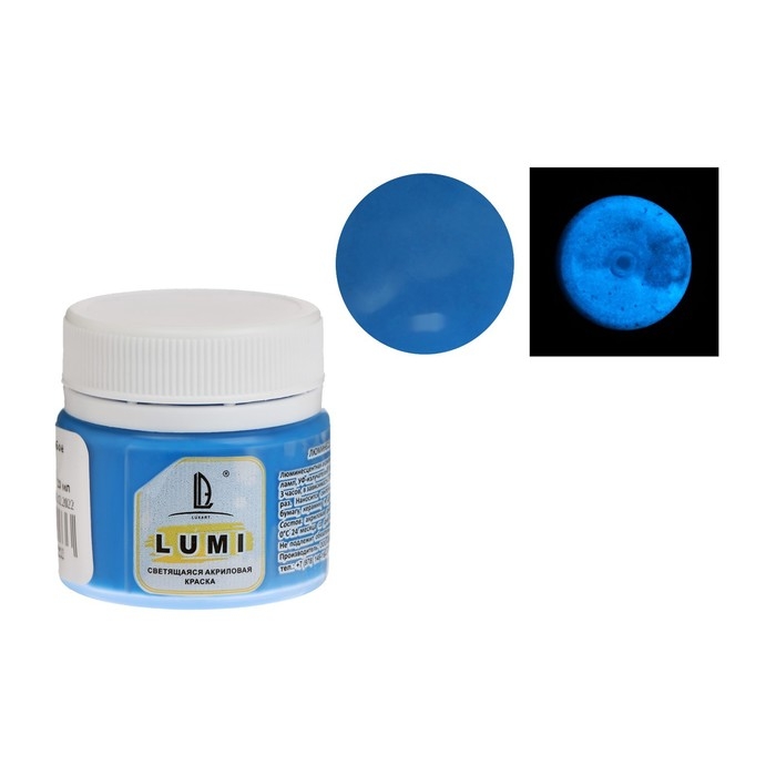 Краска акриловая люминесцентная (светящаяся в темноте), LUXART Lumi, 20 мл, синий, небесно-голубое свечение (L8V20)