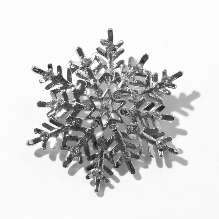 Новый год! Брошь "Снежинка узорчатая", цвет белый в серебре