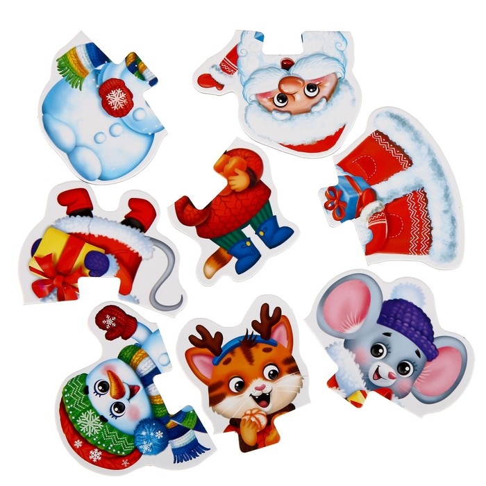 Макси-пазлы с глазками «Новый год», 4 пазла, 8 деталей