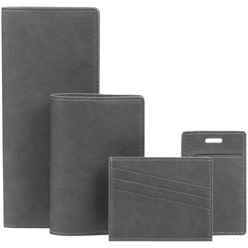 Чехол выполнен из материала Petrus, серый СС, дополнен окрашенным срезом края и внутренним карманом из серого картона. Имеет 4 отделения для кредитных карт и 1 отделение для купюр.