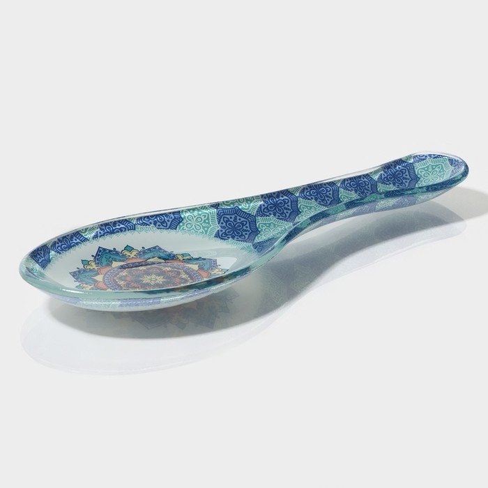 Подставка стеклянная под ложку Доляна «Сирена», 23,5×8,3 см, цвет бирюзовый