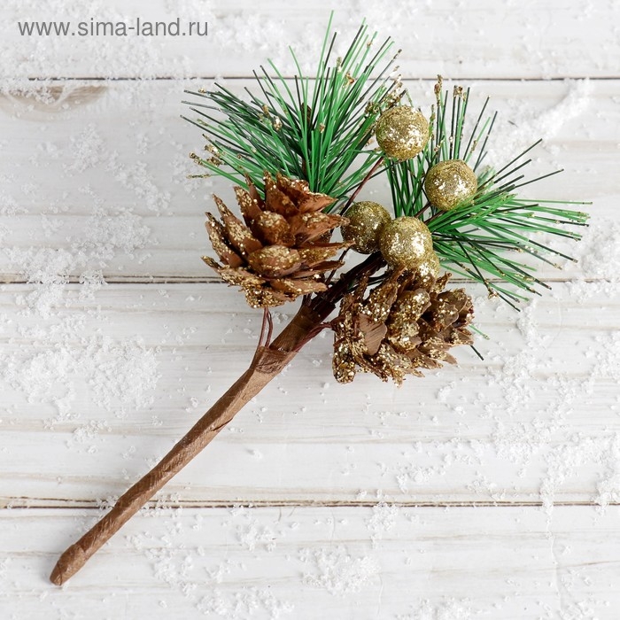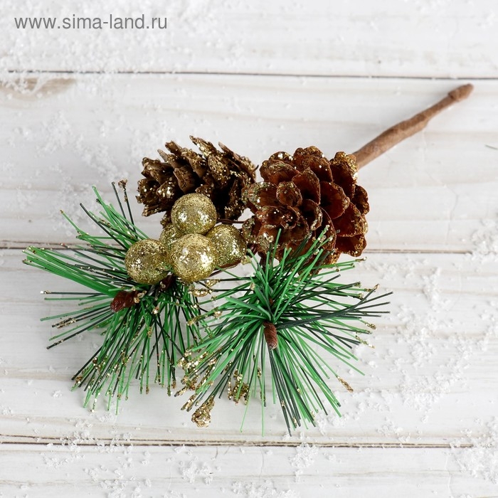 Декор "Зимние грезы" две шишки ягодки хвоя, 15 см