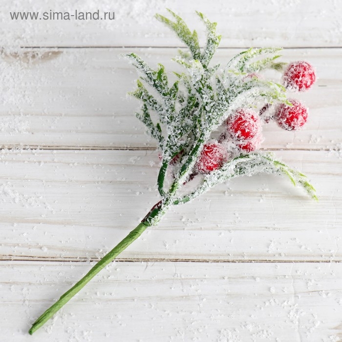 Декор "Зимнее очарование" ягодки на зелёной ветке, 14 см