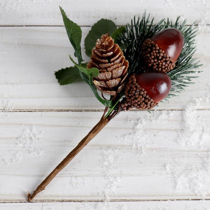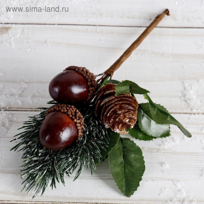 Декор "Зимнее очарование" два жёлудя с шишкой на ветке, 15 см