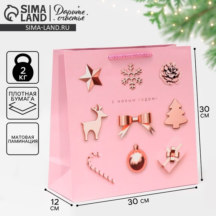 Пакет квадратный «С Новым годом!», 30 х 30 х 12 см, Новый год
