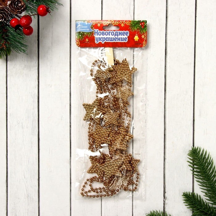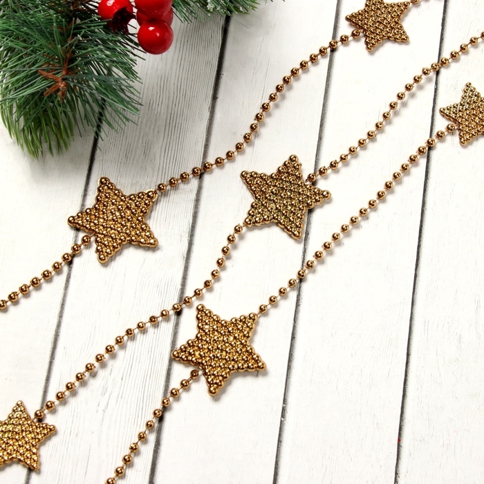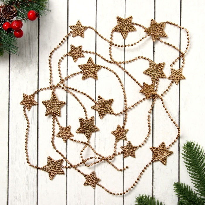 Бусы на ёлку 2,7 м "Звёзды объёмные" бронза