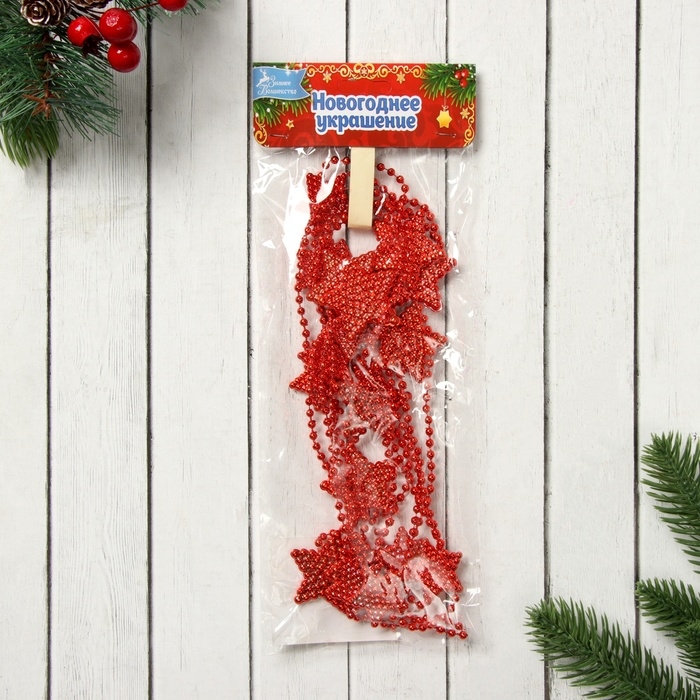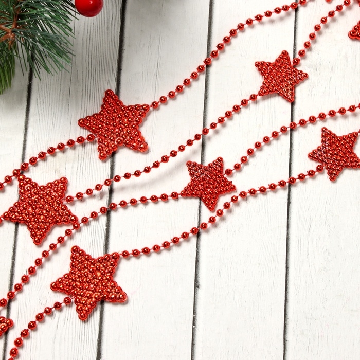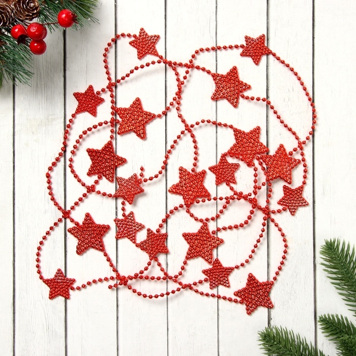 Бусы на ёлку 2,7 м "Звёзды объёмные" красный