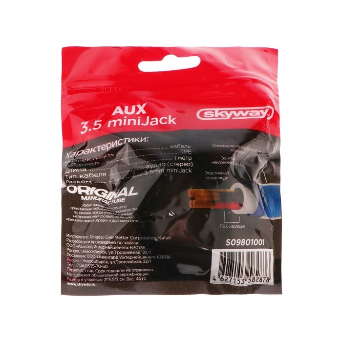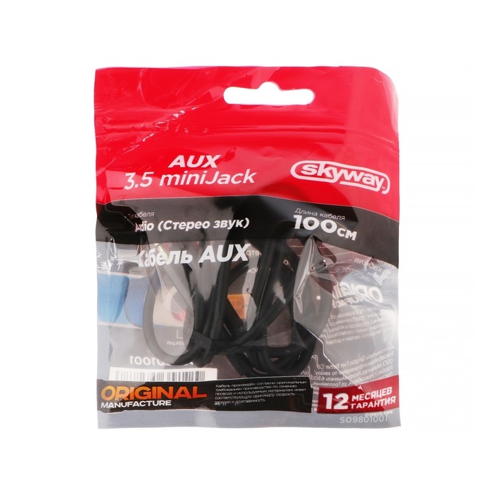 Аудио кабель Skyway AUX 3.5 мм, 1 м, S09801001