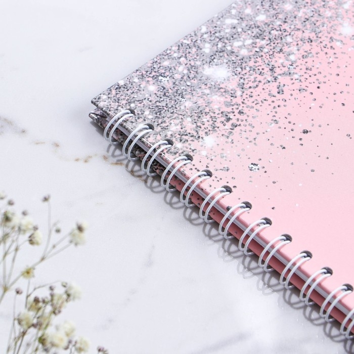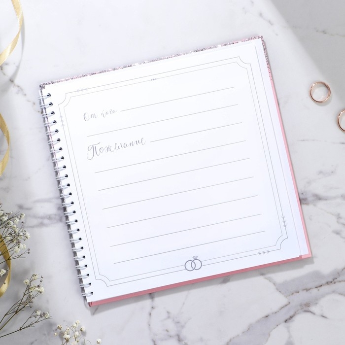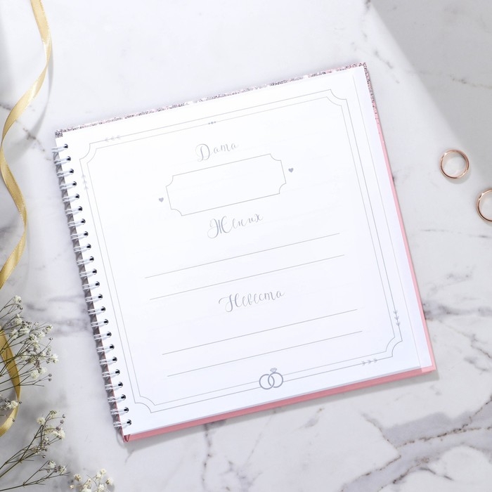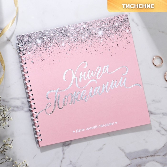 Книга пожеланий на свадьбу «Розовая с блёстками», на пружине.