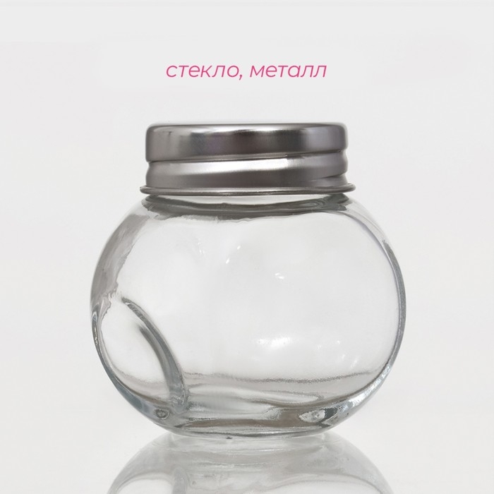 Банка стеклянная для хранения сыпучих продуктов Доляна «Мини», 70 мл, 3,7×5,4 см, с металлической крышкой