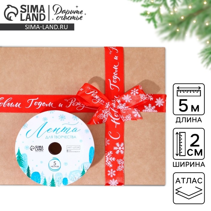 Лента декоративная атласная «С Новым годом и Рождеством!», 2 см × 5 м