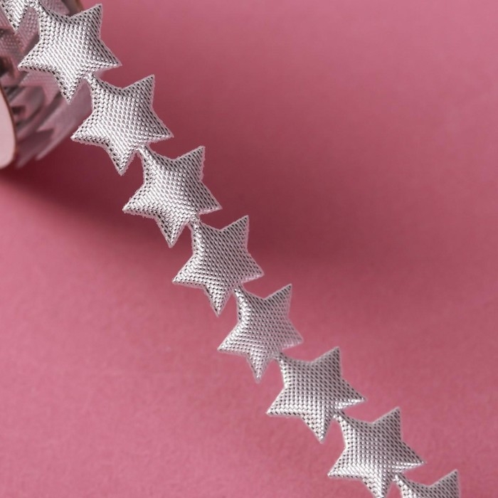 Новый год! Лента фигурная «Звёзды», 15 мм, 9 ± 0,5 м, цвет серебряный