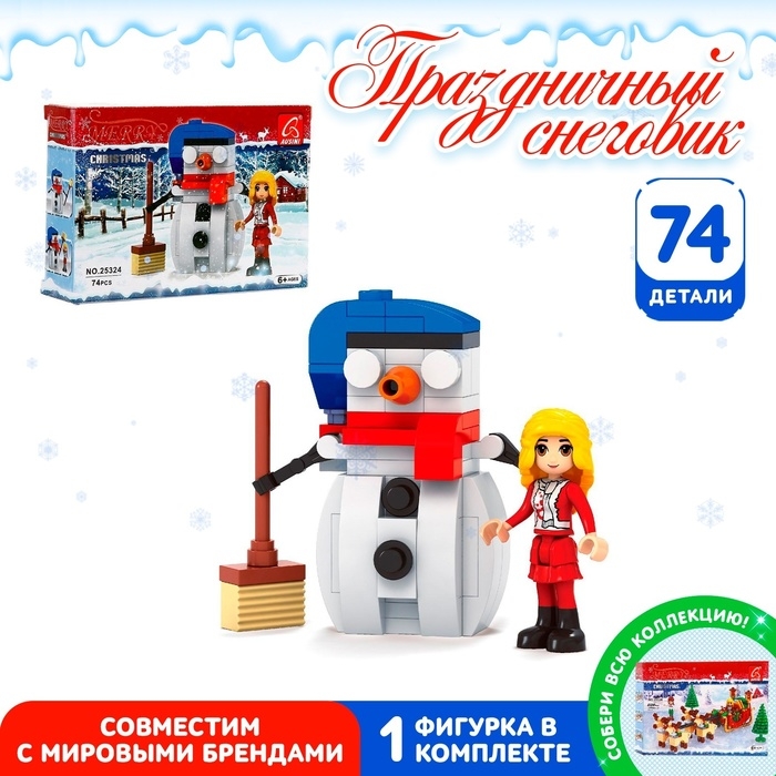 Конструктор новый год «Праздничный снеговик», 74 детали