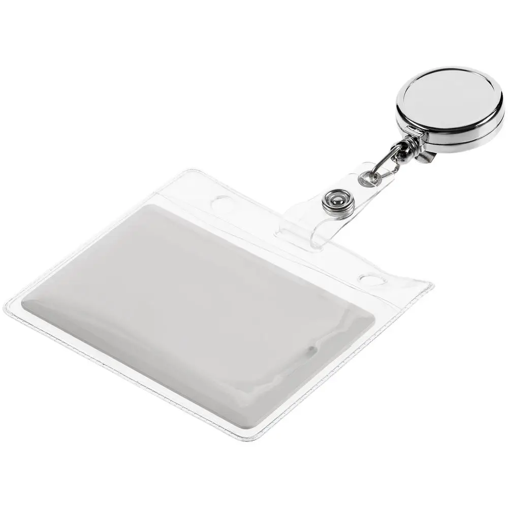 Ретрактор крепится к одежде, а с другой стороны можно поместить бейдж, визитку или магнитную карту. В корпусе спрятан сворачивающийся шнур, который позволяет при необходимости демонстрировать содержимое держателя, не снимая его.