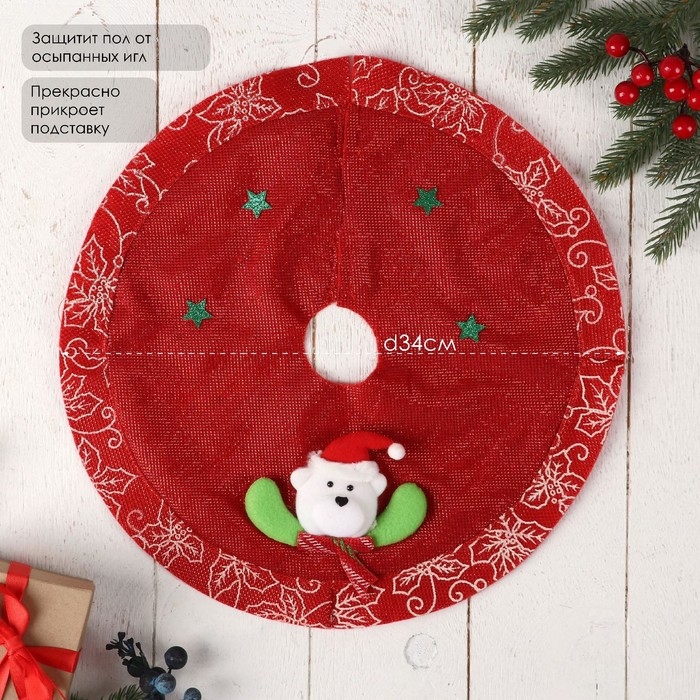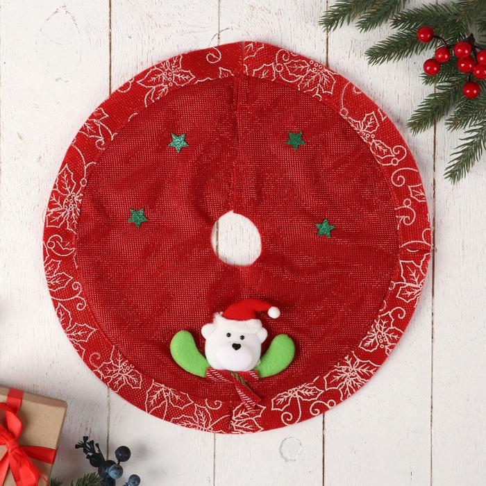 Полянка под ёлку "Мишка в звёздах" d-34 см, красный