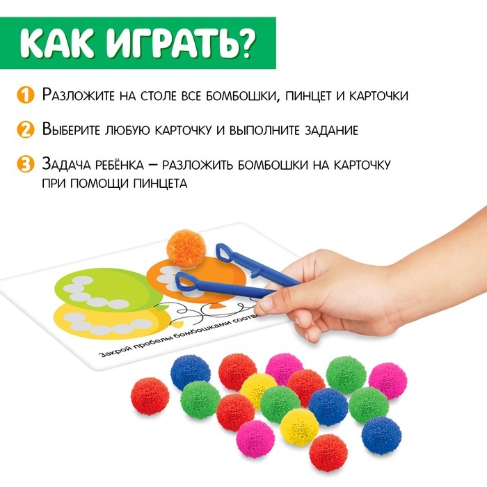 Развивающий набор «Цветные бомбошки: по методике Монтессори» — увлекательный способ обучения вашего малыша. С помощью игры ваш малыш разовьёт мелкую моторику, логическое мышление, усидчивость, а также выучит названия цветов.