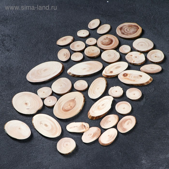 Набор из спилов дерева "Сосновый", набор 40 шт, 4 вида спилов