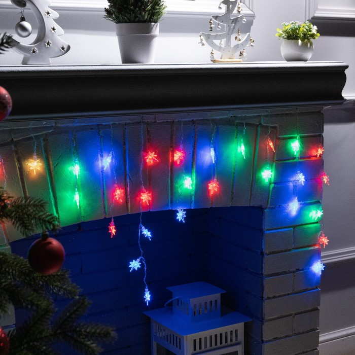 Гирлянда «Бахрома» 1.8 × 0.5 м с насадками «Звёзды», IP20, прозрачная нить, 48 LED, свечение мульти (RG/RB), мигание, 220 В