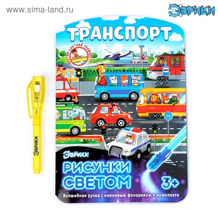 Набор для рисования светом «Транспорт», ручка с фонариком и невидимыми чернилами