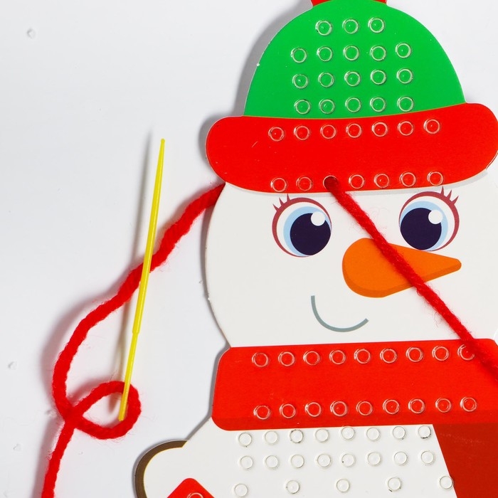 Вышивка пряжей на новый год «Снеговик» на картоне с пластиковой иглой, новогодний набор для творчества