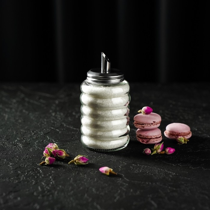 Стеклянная сахарница с дозатором отлично впишется в интерьер современной кухни и станет прекрасным дополнением к набору кухонных аксессуаров, а также внесет яркий акцент в сервировку стола.