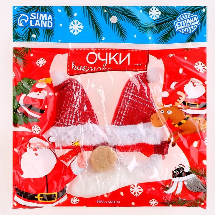 Карнавальные очки «Дед Мороз», в колпачке