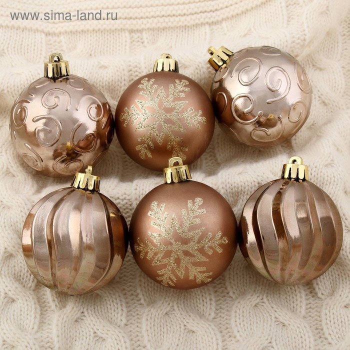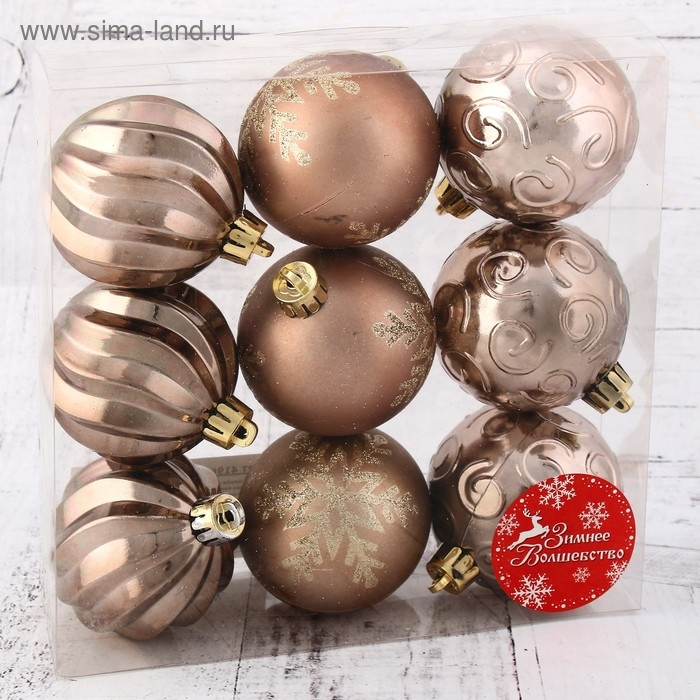 Набор шаров пластик d-6 см, 9 шт "Марокко снежинки" коричневый