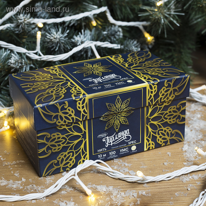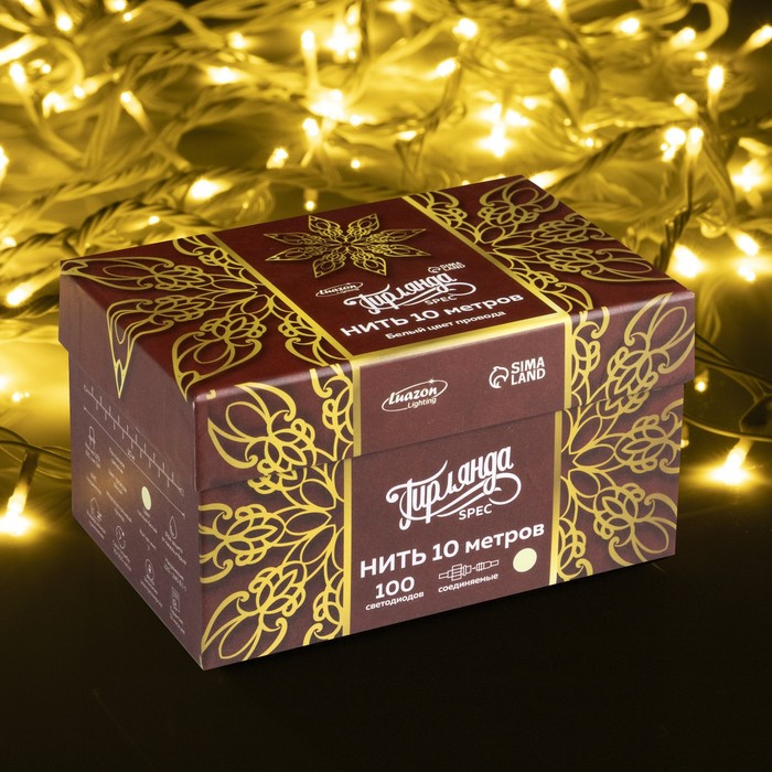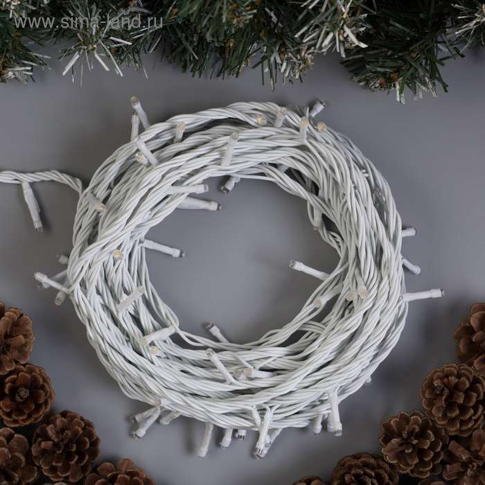 Гирлянда «Нить» 10 м, IP44, УМС, белая нить, 100 LED, свечение тёплое белое, 220 В