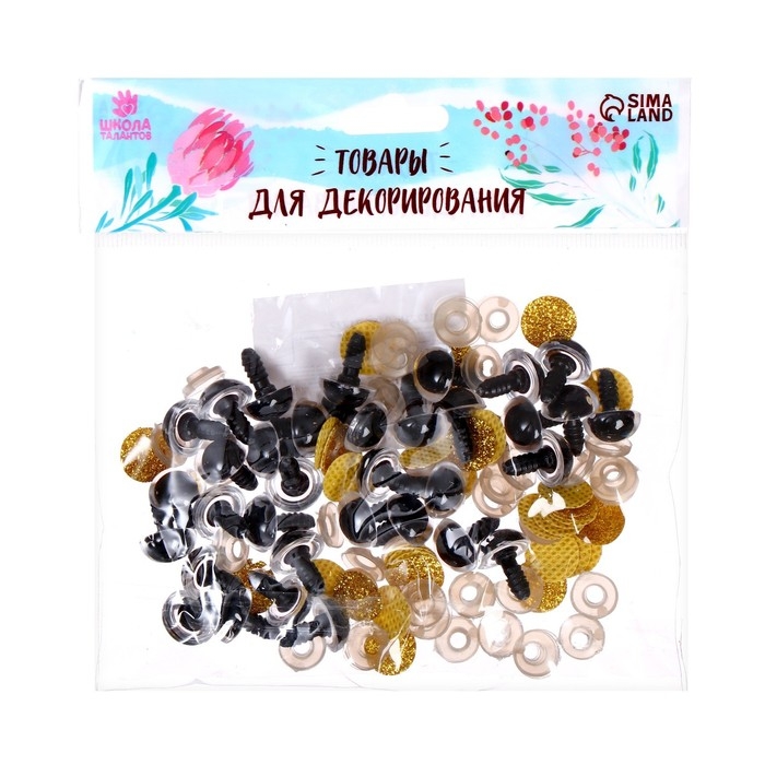 Глаза винтовые с заглушками, «Блёстки» набор 34 шт., размер 1 шт: 1,4 см, цвет жёлтый
