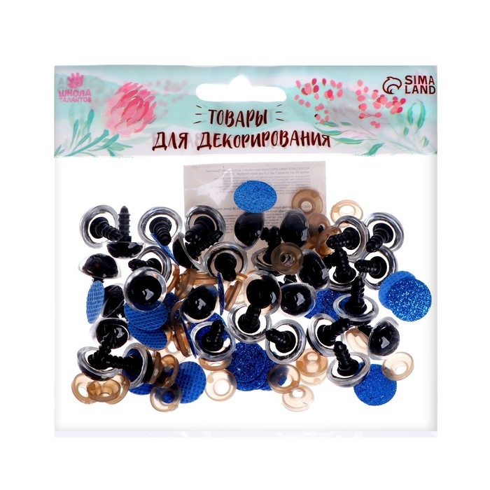 Глаза винтовые с заглушками, «Блёстки» набор 34 шт, размер 1 шт: 1,4 см, цвет синий