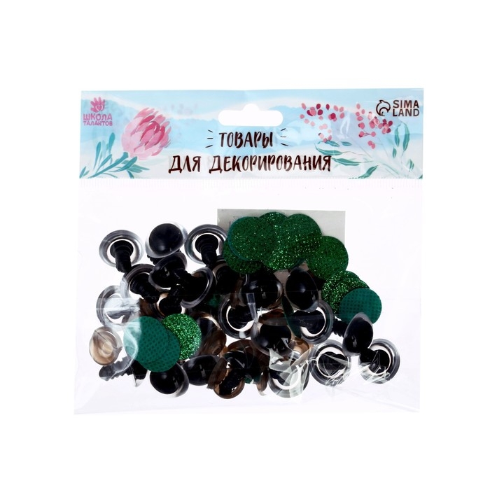 Глаза пришивные, набор 48 шт., размер 1 шт. — 1 см, цвет чёрный