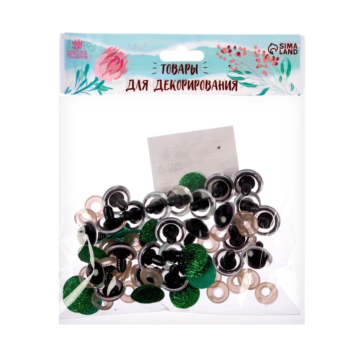 Глаза винтовые с заглушками, «Блёстки» набор 24 шт, размер 1 шт: 1,8 см, цвет зелёный