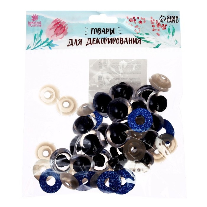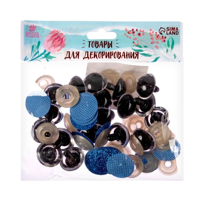 Глаза винтовые с заглушками, «Блёстки» набор 20 шт, размер 1 шт: 2,2 см, цвет синий