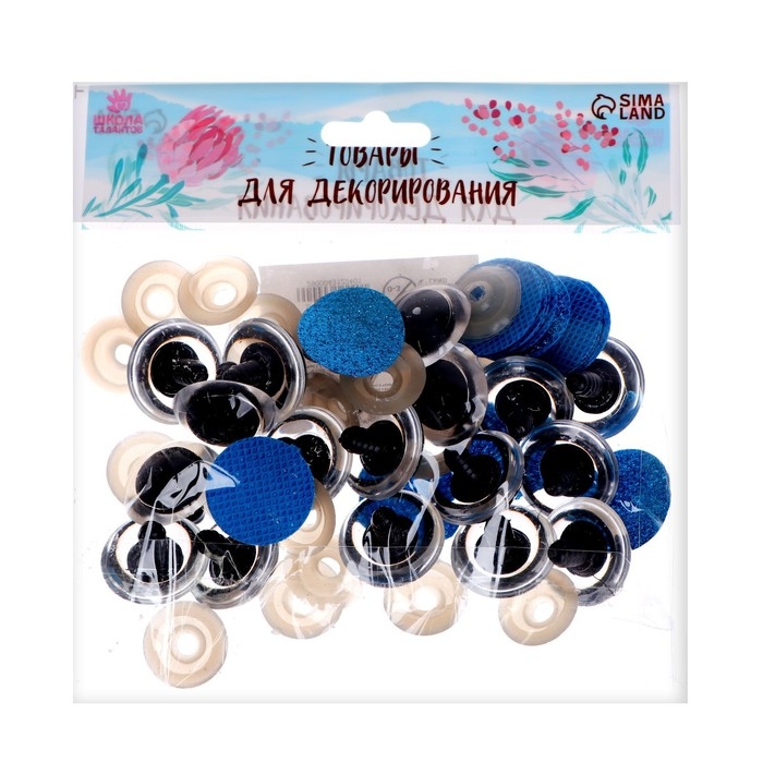 Глаза винтовые с заглушками, «Блёстки» набор 18 шт, размер 1 шт: 2,4 см, цвет голубой