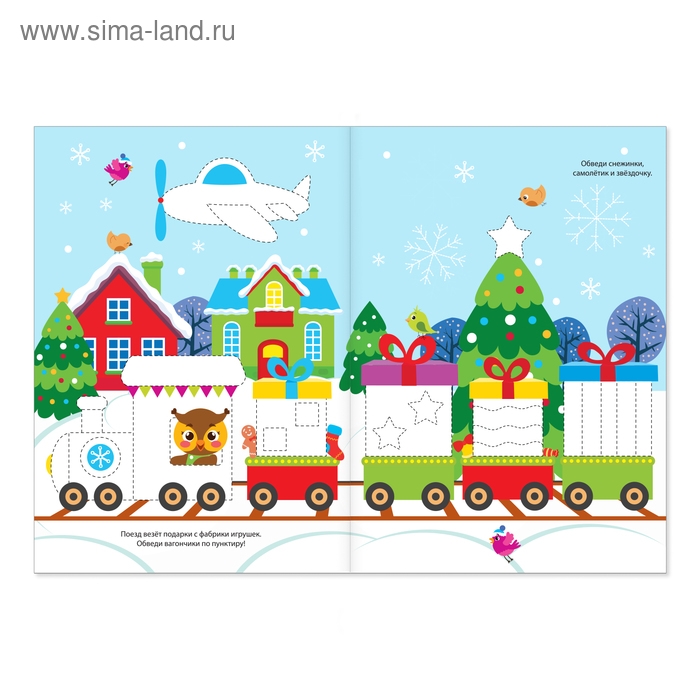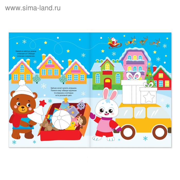 Яркие персонажи и задания заинтересуют ребёнка и подарят ощущение праздника. Кроха поможет пингвинам украсить торт, нарядит ёлку и разрисует новогодние шарики. Для удобства элементы выделены пунктирной линией. Если малыш совершит ошибку, он без труда сотрёт написанное ластиком с колпачка и нарисует всё заново.