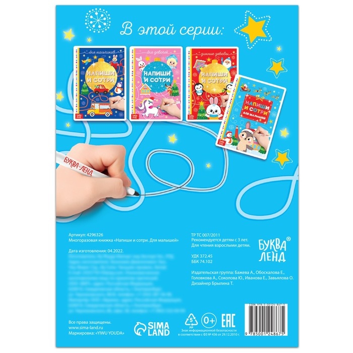 Многоразовая книжка «Напиши и сотри. Для малышей», с маркером, 12 стр.