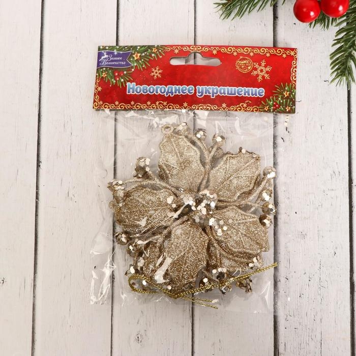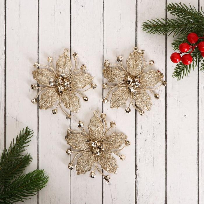Украшение ёлочное "Сияющая глазурь - цветок" (набор 3 шт) 9,5х9,5 см, золото