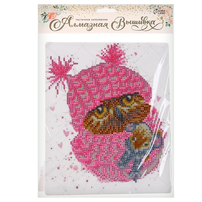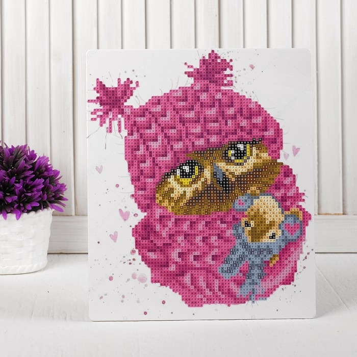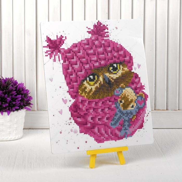 Алмазная вышивка «Сова в шапочке», с подставкой, с частичным заполнением