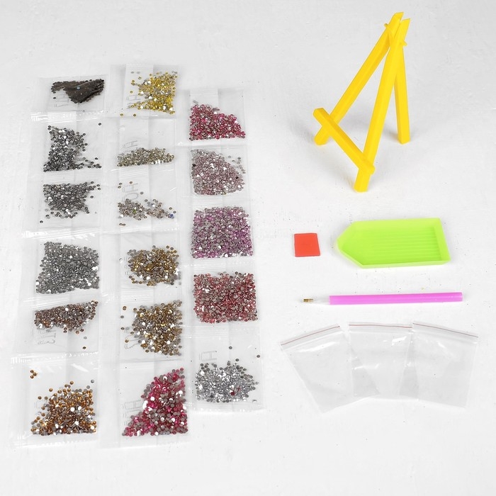 В данном наборе есть небольшой мольберт, с ним готовое творение можно удобно расположить на полке или столе без дополнительных креплений.
