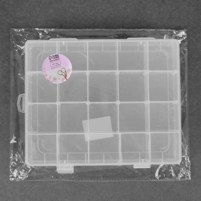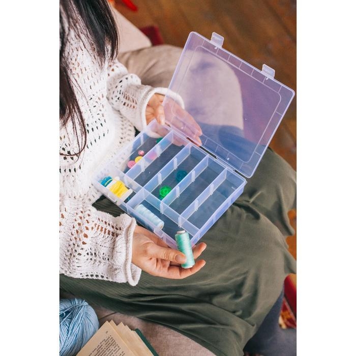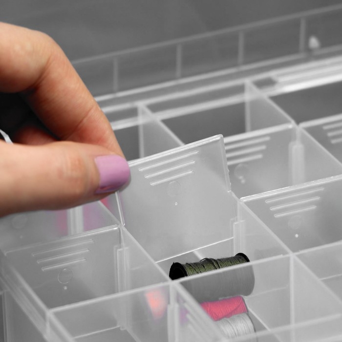 Органайзер для рукоделия, со съёмными ячейками, 20 отделений, 22,5 × 18 × 4 см, цвет прозрачный