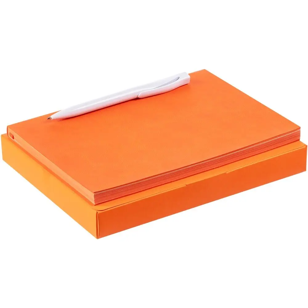 Компактный набор со стильным ежедневником в гибкой обложке с покрытием софт-тач и подходящей ручкой. Все составляющие сложены в самосборную коробку, которая придает набору законченность.