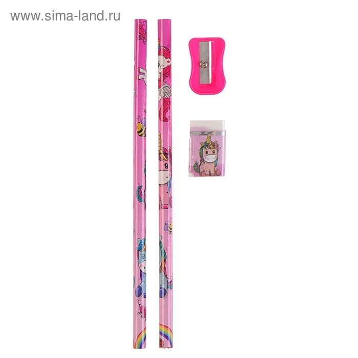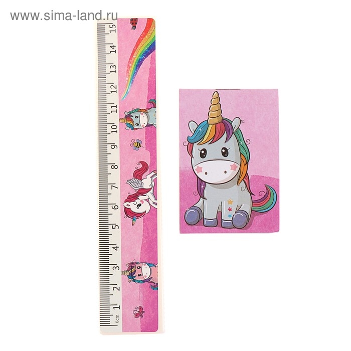 Набор настольный детский "Единорог" (подставка+2 карандаша+линейка+точилка+ластик+блокнот 8 листов)