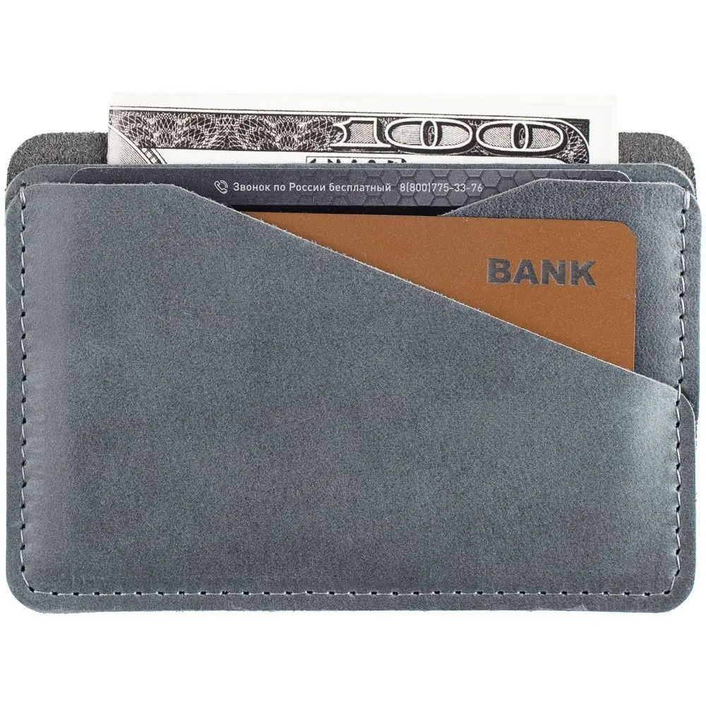 3 отделения для кредитных карт или визиток и 1 для сложенных купюр.