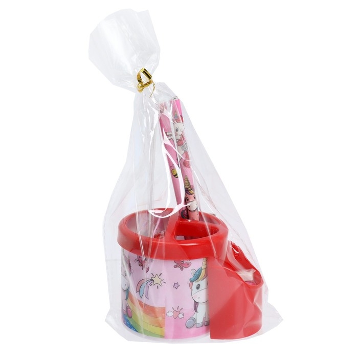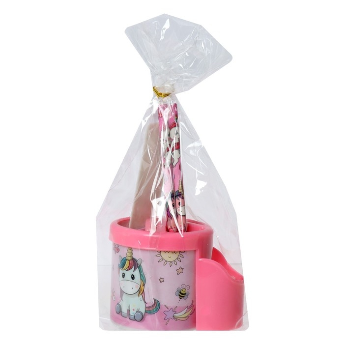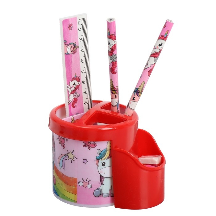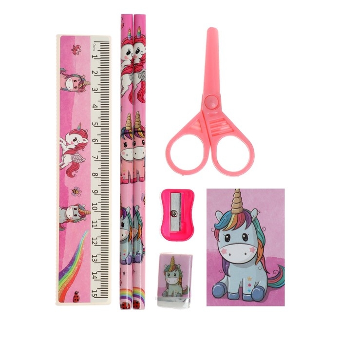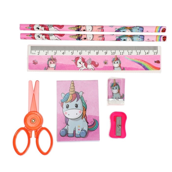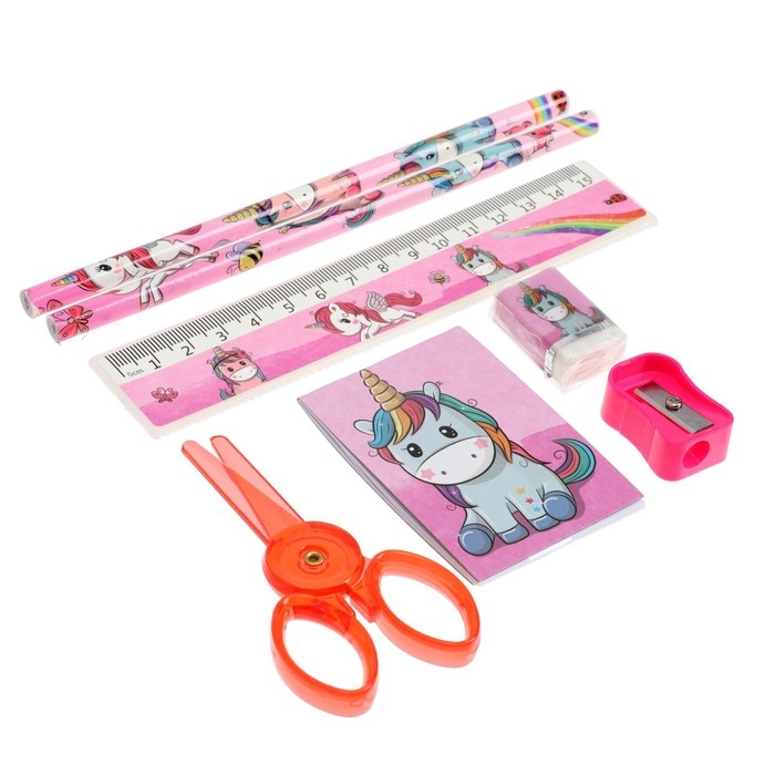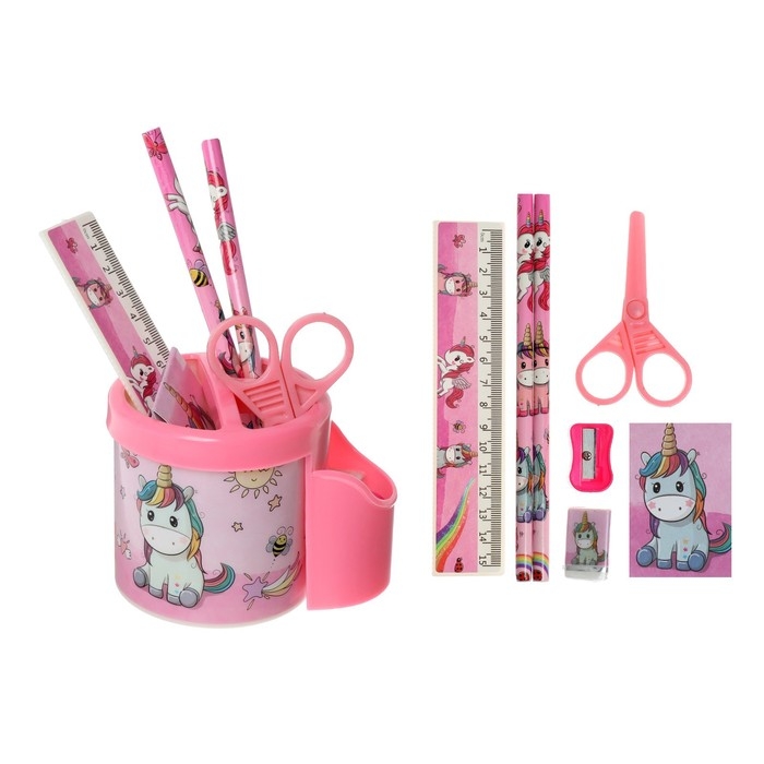 Набор настольный детский "Единорог" (подставка+2 карандаша+линейка+точилка+ластик+блокнот 8 листов+ножницы)