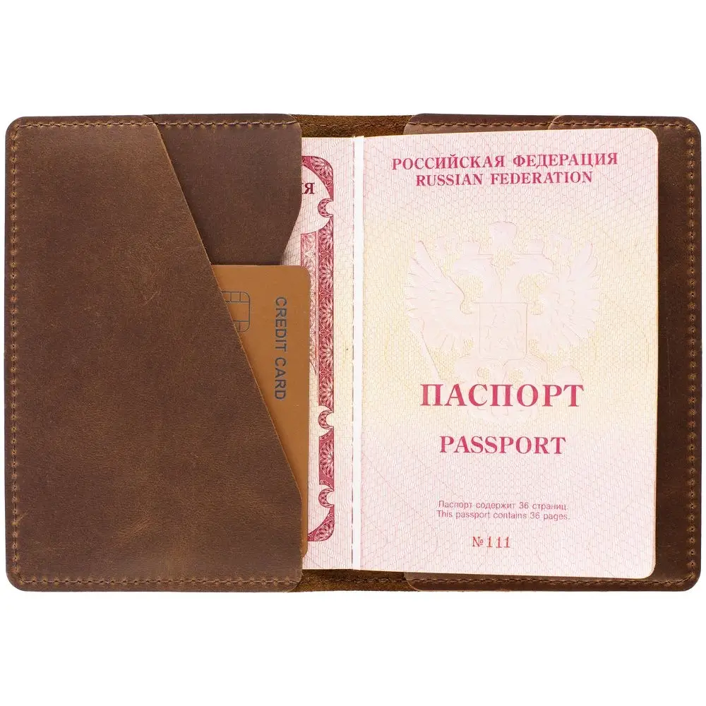 Обложка для паспорта с 2 карманами для визиток и пластиковых карт.