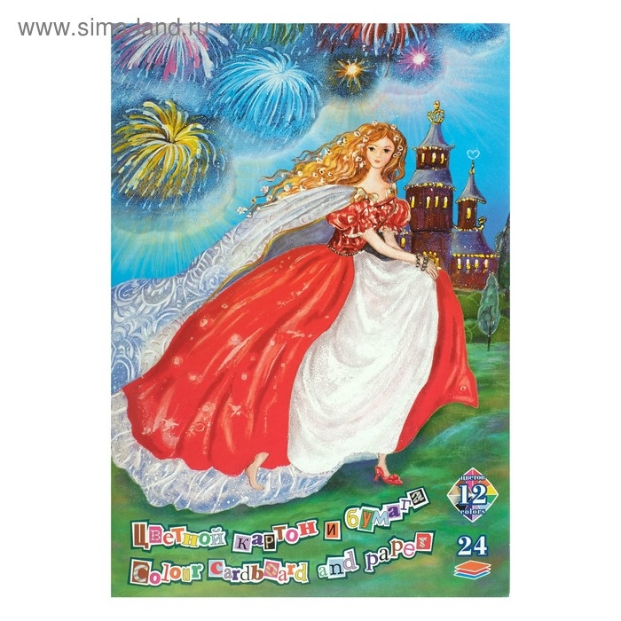 Набор для детского творчества А4, 24 листа "Золушка": 12 листов цветной картон, 12 листов цветная бумага, 12 цветов