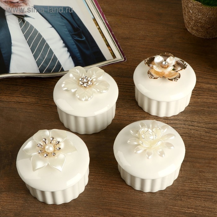 Шкатулка керамика "Золотой цветок" МИКС 6х7,3х7,3 см