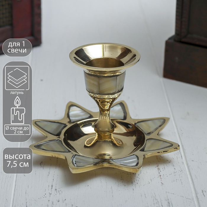 Подсвечник с перламутром "Звезда" на 1 свечу, латунь 9,5х9,5х6,5 см