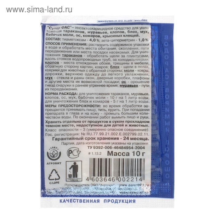 Средство от насекомых "Супер-Фас" бытовой водорастворимый порошок, 10 г